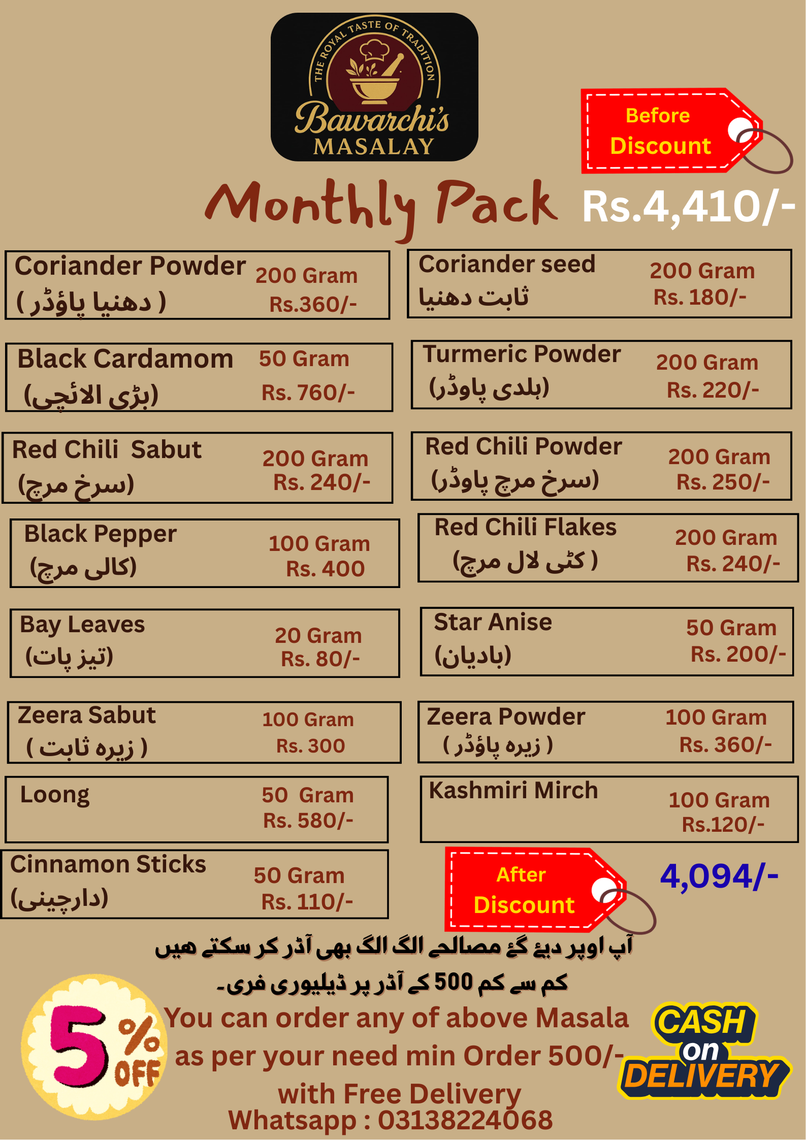 | Zeera Powder | 100 |